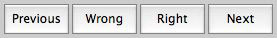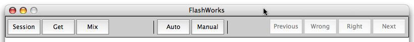 Once you have clicked Next, the two middle buttons become Wrong and Right. If you did not remember the definition of a word, click Wrong, otherwise Right. After three times of getting a word correct, FlashWorks changes the word's difficulty rating (see below).