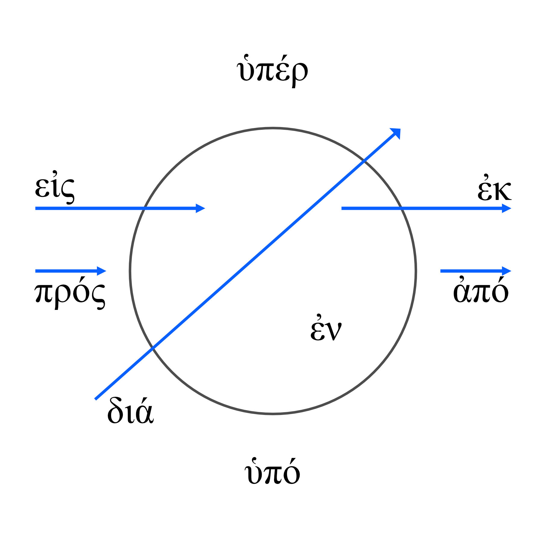Prepositions are so common that you should memorize them. The ones you will learn in this chapter can be mapped spatially (although a few have meanings that are not spatial).