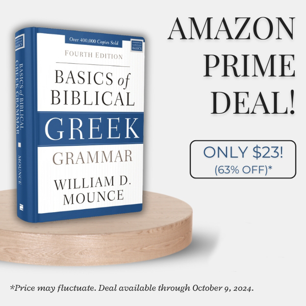 Amazon Prime Members: Basics of Biblical Greek Grammar, Fourth Edition is on sale right now for an extremely low price. The discount will fluctuate but you can expect to see savings around 60% until October 9. If you need a copy, now is the time to buy!