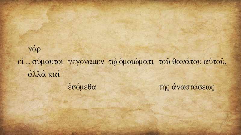 In Romans 6, Paul has been talking about the role of ongoing sin in the believer’s life. In verse 5 he says, “For if we have become united with him in the likeness of his death, we will certainly also be united with him in the likeness of his resurrection.” If you check the Greek, you will see that there are no specific words behind the italicized words above. σύμφυτοι and τῷ ὁμοιώματι are being assumed from the first half of the sentence. In the graphic above, I reversed the order of the second verb ἐσόμεθα and τῆς ἀναστάσεως so you can see the parallel between the γεγόναμεν and ἐσόμεθα.