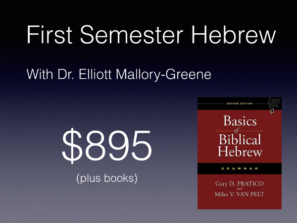 Dr. Elliott Mallory-Greene is teaching Hebrew online starting August 31, 2017. Each semester of the two semester class will cost $895 (plus books).