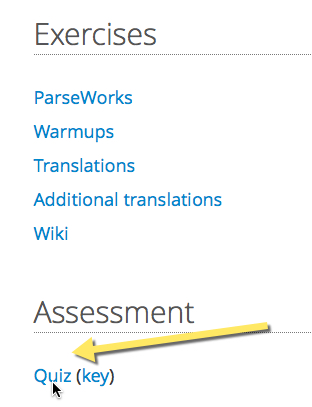 Quizzes and their keys are available at the bottom of every lecture page in the online class.