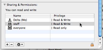 - Go to the bottom and set the permissions to the "staff" group to Read & Write.