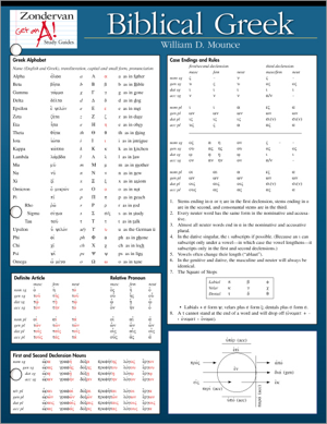 Students of biblical Greek may not know everything they need to know, but they do know there’s a lot they need to know! Whether studying for exams or translating passages of Scripture, students need critical information at their fingertips. Instead, it’s usually scattered throughout textbooks, self-made crib sheets, and sticky-notes on their computer monitor. Now there’s a better way! The Zondervan Get an A! Study Guides to Biblical Greek are handy, at-a-glance study aids ideal for last minute review, a quick overview of grammar, or as an aid in translation or sermon preparation. Each set contains four information-packed sheets that are laminated and three-hole-punched, making them both durable and portable.