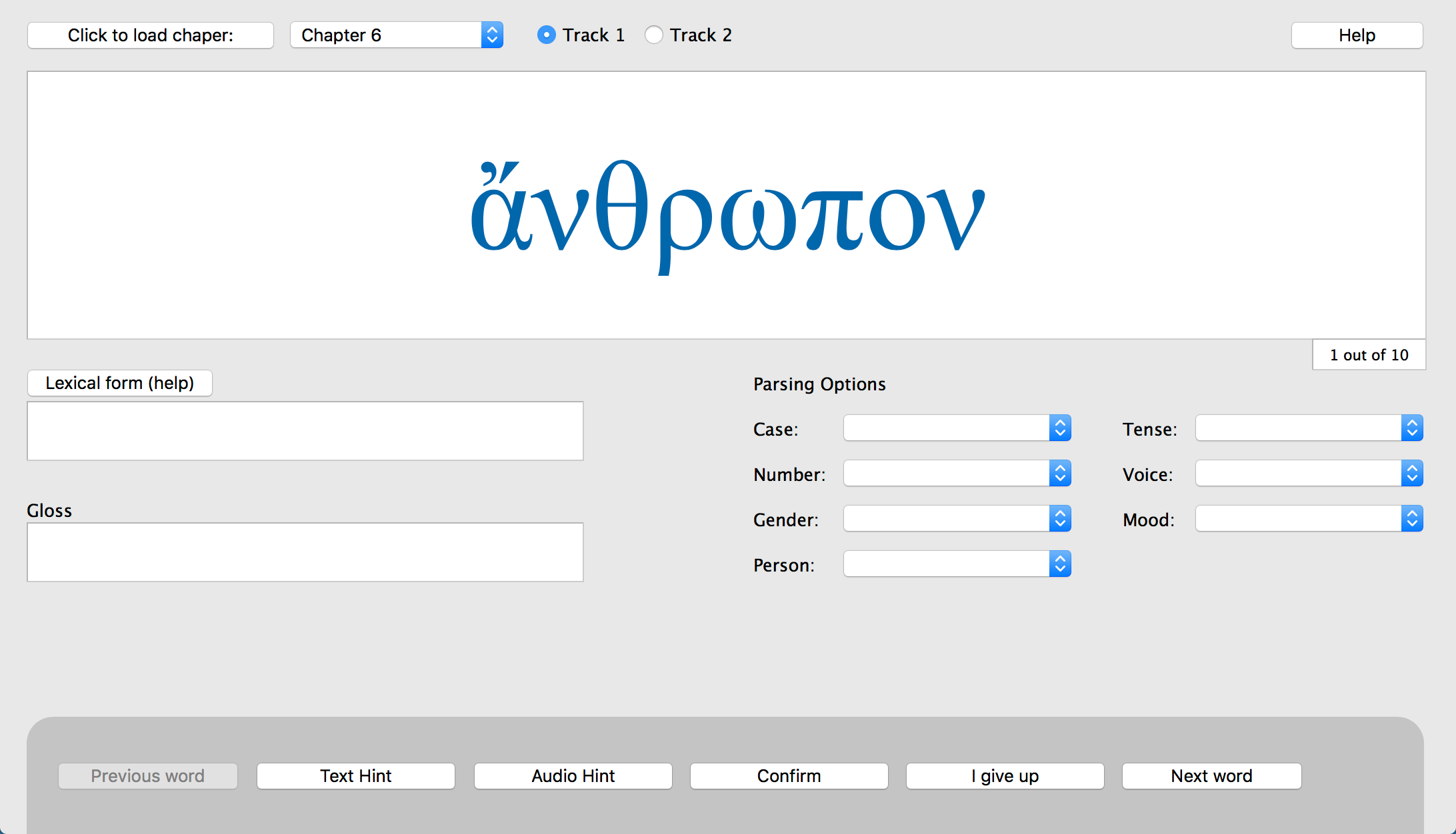 Parseworks is a Greek parsing program for use with Bill Mounce's Basics of Biblical Greek. It is accessed from inside the online classes.