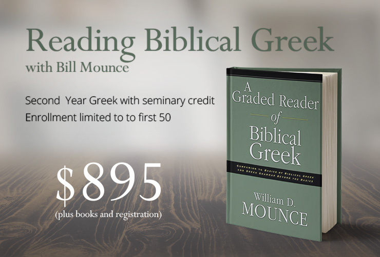 Bill Mounce, author of the best-selling Basics of Biblical Greek, is teaching second year Greek online starting SeptemberXX, 2016, using his textbook, A Graded Reader of Biblical Greek.