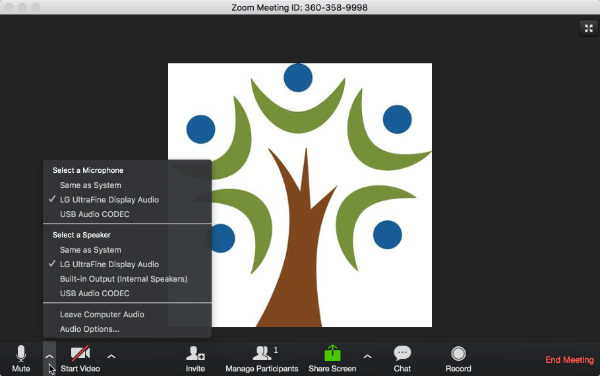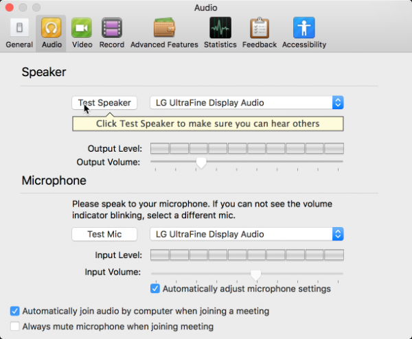 If you are having trouble with audio, select Audio Options and test to see if your speaker and microphone are working.