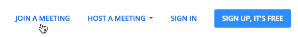 Go to Zoom.us (not Zoom.com) and click on “Join A Meeting” in the upper right corner of the browser window.