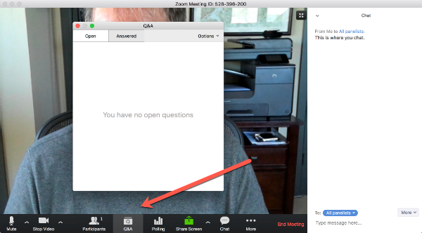 Raise your hand. When the panelist is ready to hear your question, your audio (and video if it is not muted) will be broadcast to all attendees. This is the best way to ask questions; just recognize that everyone will hear and/or see you.