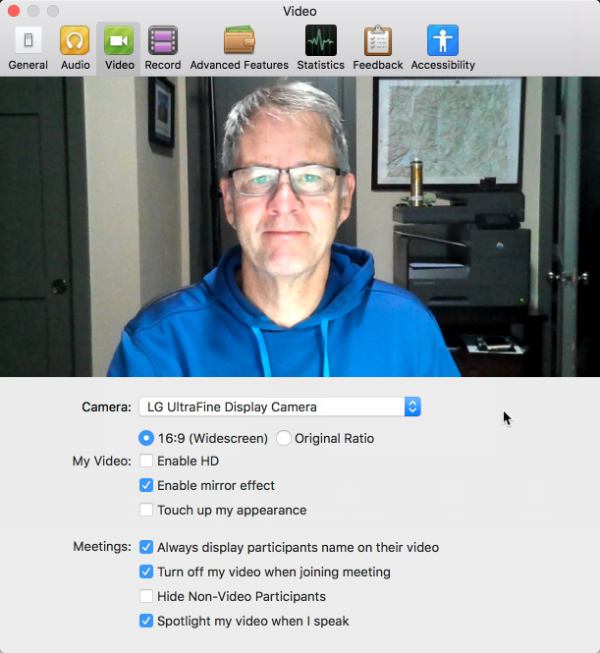 If you are having trouble with video, select Video Options and test to see if your camera is working.